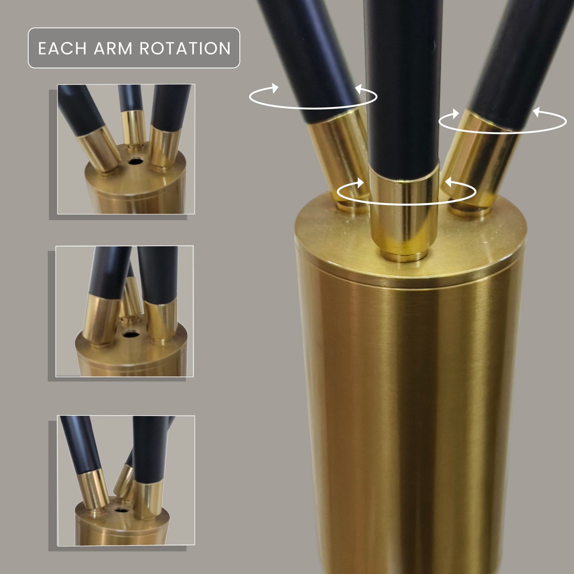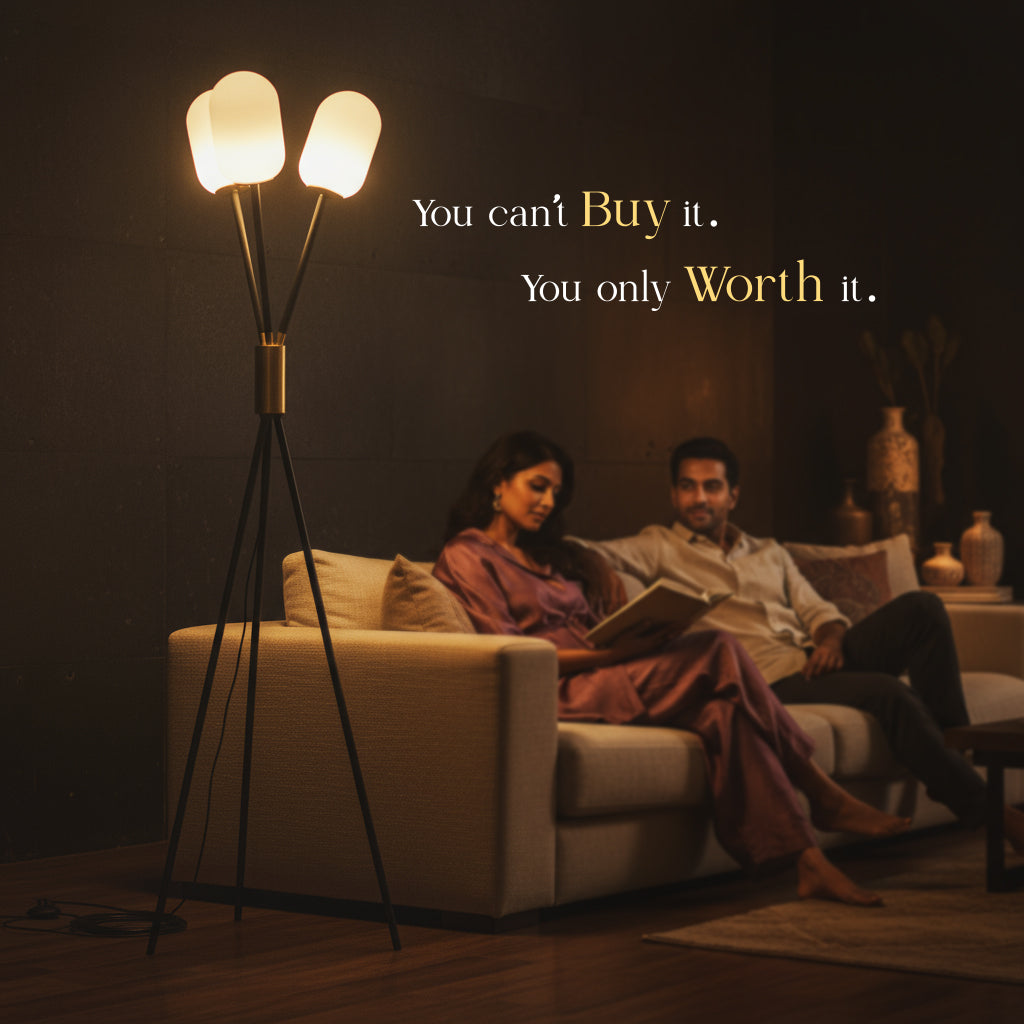 A statement of quiet luxury. Crafted with a sleek black tripod frame, golden accents, and frosted glass globes, Noir Ember fills your space with a warm, sophisticated glow. Perfect for modern living rooms, bedrooms, or offices — where design meets elegance.